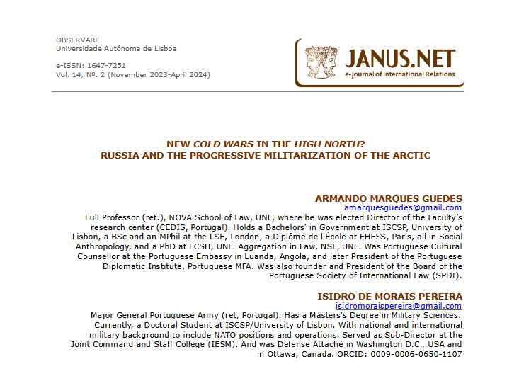 Armando Manuel de Barros Serra Marques Guedes: NEW COLD WARS IN THE HIGH NORTH? RUSSIA AND THE PROGRESSIVE MILITARIZATION OF THE ARCTIC