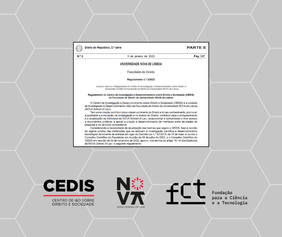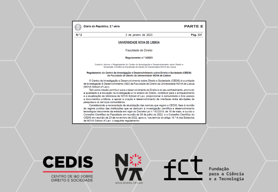 The Centre for Research and Development on Law and Society (CEDIS) of NOVA School of Law began the year with new regulations. The document No. 3/2023 was published in the Official Gazette of the Republic No. 02/2023, Series II of January 3, 2023.
