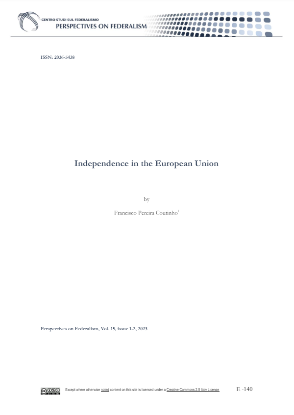 Coutinho, Francisco Pereira. / Independence in the European Union. In: Perspectives on Federalism. 2023 ; Vol. 15, No. 1-2. pp. 140-191.
