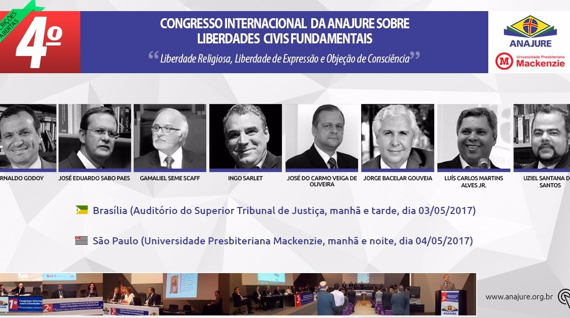 O nosso investigador, o Professor Doutor Jorge Bacelar Gouveia, irá estar, nos próximos dias 3 e 4 de maio, em Brasília e São Paulo, respetivamente, para participar no Congresso Internacional da ANAJURE sobre liberdades civis fundamentais, que versará sobre os temas “Liberdade religiosa, liberdade de expressão e objeção de consciência”.