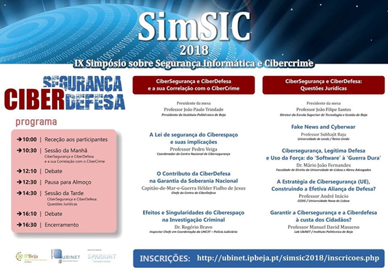 No próximo dia 15 de maio, o nosso Investigador, o Doutor André Inácio, irá marcar presença no IX Simpósio sobre Segurança Informática e Cibercrime, no Instituto Politécnico de Beja.