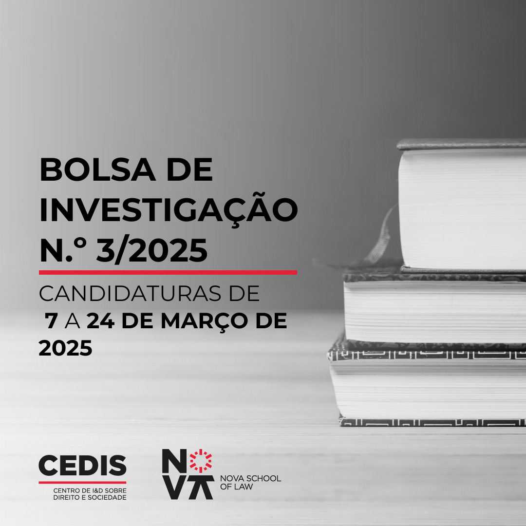 - Applications must be formalised by sending an email to concurso.bolsas@novalaw.unl.pt, mentioning the grant reference “Research grant no. 3/2025.” in the subject line of the email.