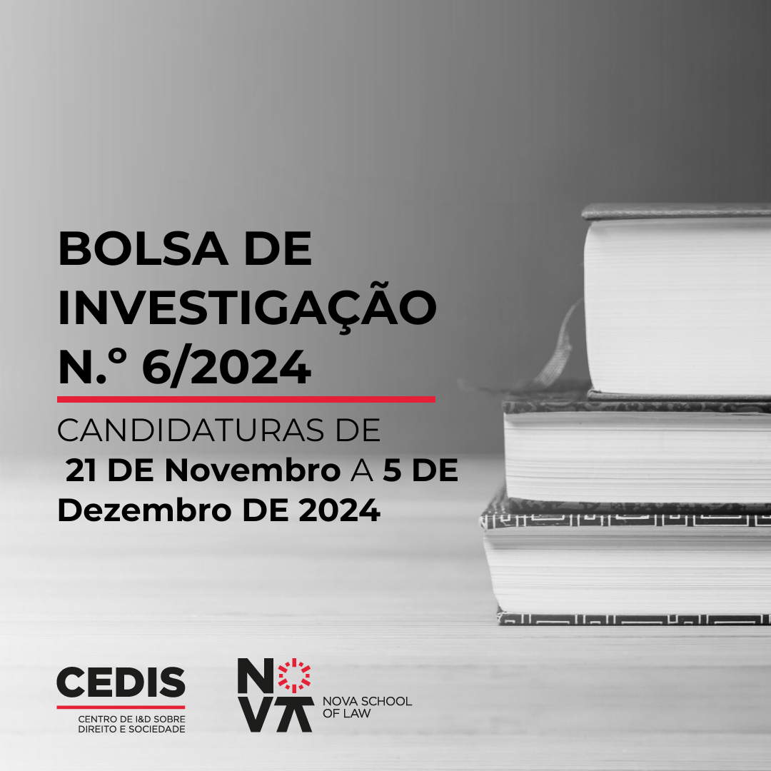 13. Applications must be formalised by sending an email to concurso.bolsas@novalaw.unl.pt, mentioning the grant reference “Research grant no. 6/2024.” in the subject line of the email.