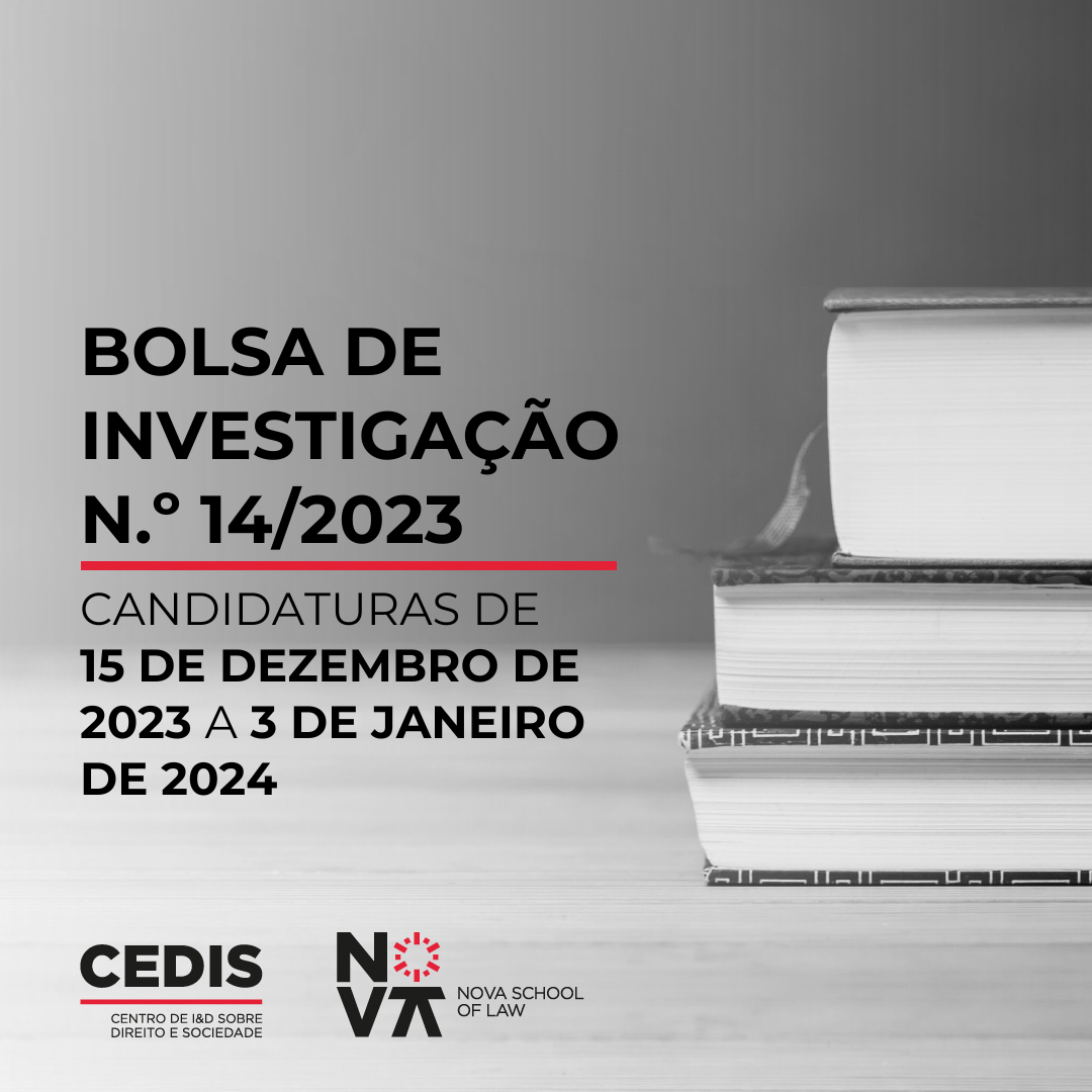 In accordance to art. 8 of the Research Grants Regulation of the Foundation for Science and Technology, with the financial support of the FCT/MCTES through national funds (PIDDAC), and within the scope of the R&D Project “IN_SOLVENS: Direito da Insolvência em Portugal – uma análise multidisciplinar” (Ref. PTDC/DIR-OUT/2939/2020), a call for applications is hereby launched for 1 (one) Research Grant (BI), for a Master’s student, to collaborate in the mentioned research project, hosted by CEDIS, Centre for R&D on Law and Society (UI0714), at NOVA School of Law – Faculty of Law, Lisbon NOVA University, coordinated by Professora Doutora Mariana França Gouveia.