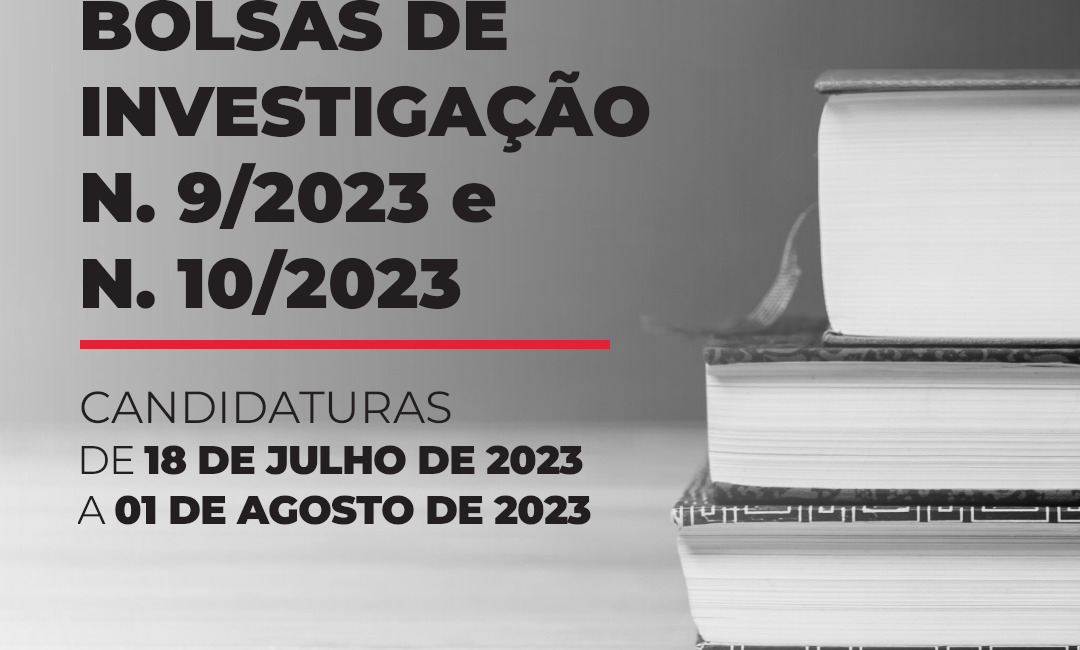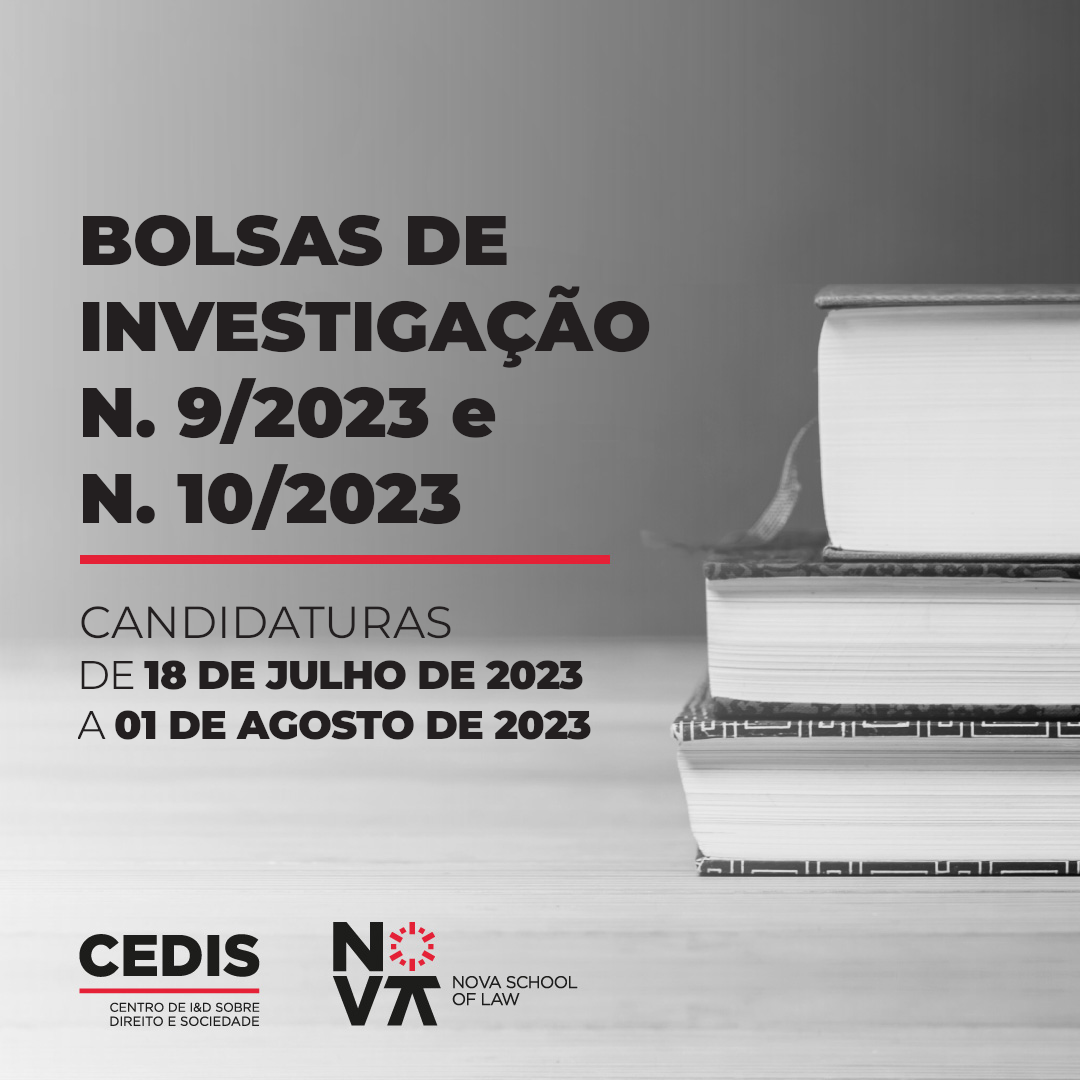 Formalisation of applications: Applications should be accompanied by a detailed curriculum vitae, a copy of the transcript of grades (bachelor and master) and a letter of intent and sent to the email concurso.bolsas@novalaw.unl.pt, with the subject “Research Grant n.º 9/2023 and n.º 10/2023”.